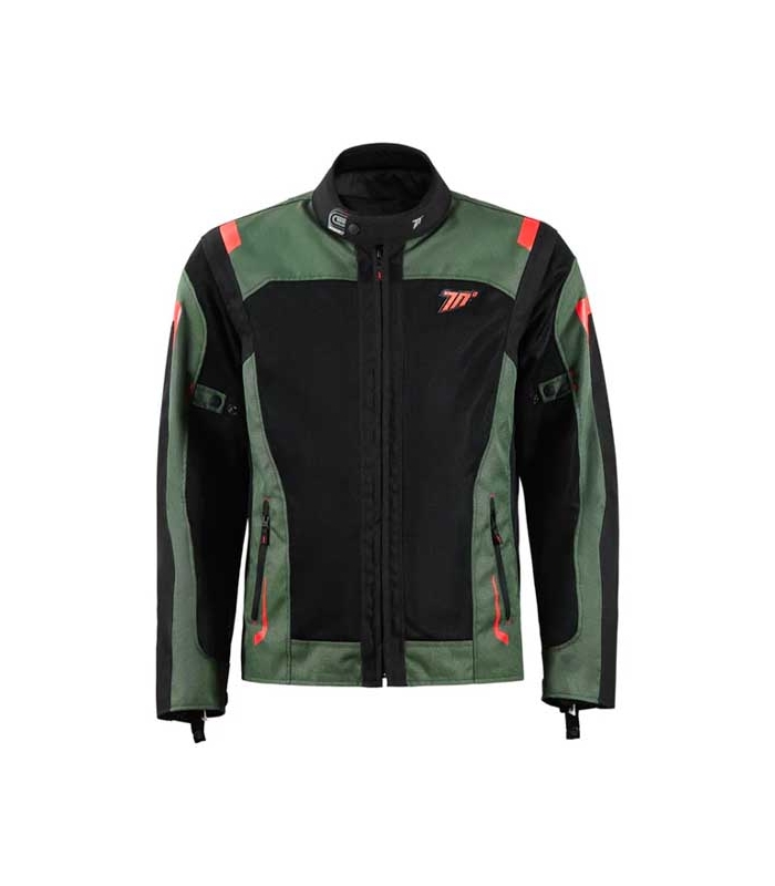 La chaqueta para hombre SEVENTY DEGREES SD-JT66 SAHARA VERDE MILITAR / ROJO combina protección avanzada, diseño ergonómicoy máxima visibilidad, gracias a su atractivo acabado en negro, gris y amarillo flúor. Diseñada para motoristas que recorren largas distancias o se enfrentan a condiciones cambiantes, esta chaqueta touring ofrece un equilibrio perfecto entre funcionalidad y estilo.