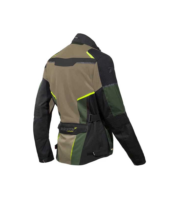 La chaqueta para hombre SEVENTY DEGREES SD-JT70 ATACAMA ARENA / VERDE / AMARILLO FLÚOR combina protección avanzada, diseño ergonómicoy máxima visibilidad, gracias a su atractivo acabado en negro, gris y amarillo flúor. Diseñada para motoristas que recorren largas distancias o se enfrentan a condiciones cambiantes, esta chaqueta touring ofrece un equilibrio perfecto entre funcionalidad y estilo.