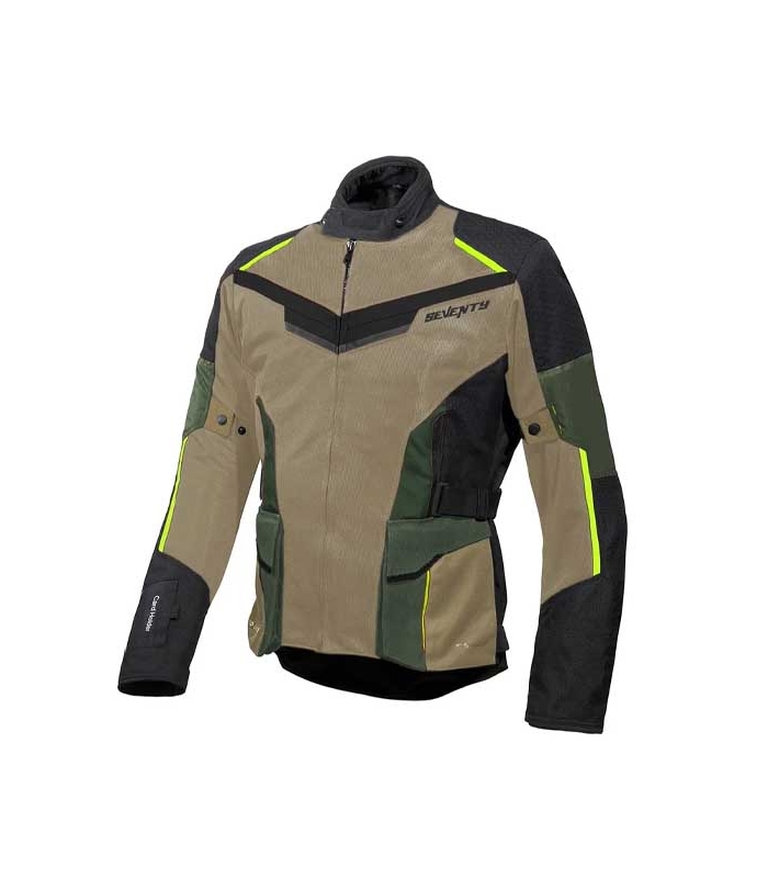CHAQUETA CORDURA SEVENTY DEGREES SD-JT70 ATACAMA – ARENA / VERDE / AMARILLO FLÚOR. Seguridad visible, confort total y diseño touring de alto rendimiento.