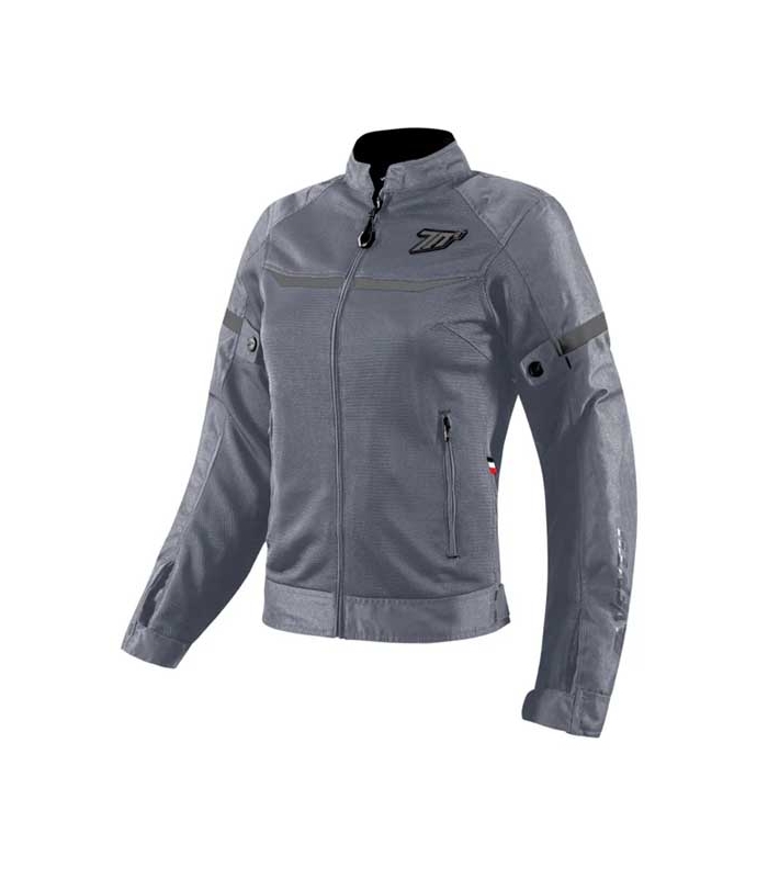 Chaqueta de mujer SEVENTY DEGREES SD-JR30.2 MOJAVE ICE GRIS de moto fabricada en resistente poliéster 450D con paneles de tejido perforado para una ventilación óptima, ideal para climas cálidos. Totalmente ajustable en brazos y cintura para un mejor ajuste, y equipada con zonas reflectantes que aumentan la visibilidad nocturna. El cuello y las muñecas cuentan con acabados en neopreno para mayor comodidad. Incluye protecciones extraíbles en codos y hombros, homologadas CE (EN1621) de nivel 1, con la opción de sustituirlas por protecciones de nivel 2 (SD-A11). También dispone de un bolsillo interior para añadir una espaldera SDA10 de nivel 2 (no incluida).