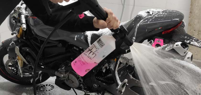 ✓ Lavado de motos: ¿Eres de los que no le gusta lavar la moto? No te preocupes, nosotros te damos la solución, ya que contamos con nuestro propio servicio de lavado de motos integral, donde la mimaremos con los mejores productos de limpieza de la prestigiosa marca Muc Off, protegiéndola de los agentes externos del día a día.