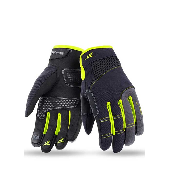 Los guantes de moto para hombre de verano Seventy Degrees SD-C48 negro/amarillo fluor, son la elección perfecta para aquellos que buscan un guante cómodo y muy ventilado en los días más calurosos. Confeccionados en tejido elástico 4way y piel sintética, estos guantes cuentan con zonas transpirables y agujeros de ventilación para garantizar una óptima circulación del aire en todo momento. Además, su diseño urbano y elegante se adapta a cualquier estilo de moto, ya sea scooter, naked o deportiva.
