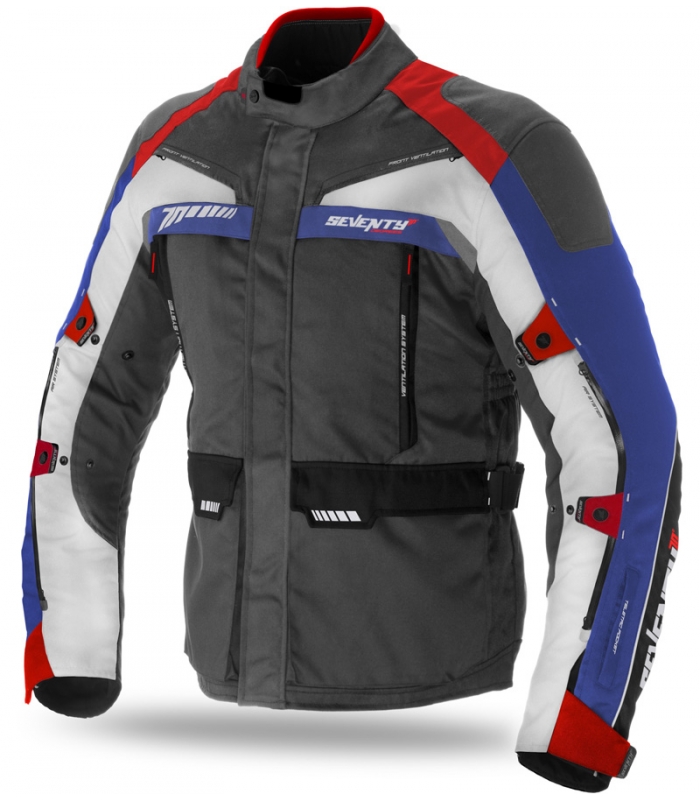 CHAQUETA CORDURA SEVENTY DEGREES SD-JT43 TOURING GRIS OSCURO / ROJO / AZUL TALLA S / L / XL / XXL